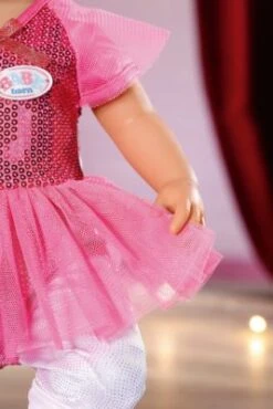 BABY born geht zum Ballett! Sie kann schon ziemlich gut tanzen und dieses bezaubernde Set sorgt bei Puppeneltern und Puppenkind bestimmt für Begeisterung. In dem Set enthalten ist ein Tütü mit glitzernden Pailletten-Applikationen, einem passenden Stirnband und Ballettschuhen. Mit den Leggings und dem Jäckchen findet das Outfit eine tolle Ergänzung und der kleine Turnbeutel bietet Platz für die kleinen Puppen-Utensilien.
