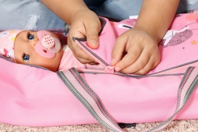 Mit dieser wunderschönen „BABY born®“ Tragetasche von Zapf Creation haben kleine Puppeneltern ihre Lieblingspuppe immer dabei! Die Tasche mit sĂĽĂźem Häschendesign lässt sich mit den beiden Griffen einfach tragen und dient zugleich als Schlafsack.