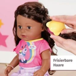 Die Sister Puppe ist die große Schwester von BABY born®, die schon selbstständig sitzen und stehen kann. Sie hat wunderschöne lange Haare, die mit dem enthaltetenen Zubehör gekämmt und immer wieder neu frisiert werden können. Sie trinkt aus dem Fläschen und kann, wenn sie getrunken hat, sogar Tränen vergießen. Hat sie sich beim Spielen schmutzig gemacht, kann sie ein Bad nehmen. Sie ist sehr beweglich und somit eine besonders tolle Spielgefährtin!