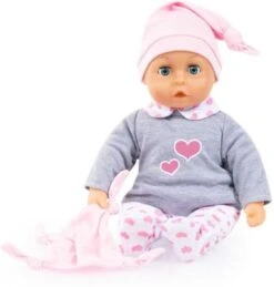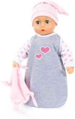 Für alle Puppeneltern kommt mit diesem bezaubernden 6-teiligen Puppenkleidungs-Set von Bayer ein tolles Outfit für das Puppenkind. Im passenden Farb-Mix begeistern hier ein Schlafsack mit Ärmeln, eine Hose, ein Oberteil, eine Mütze, ein Latz und ein Kuscheltuch die kleinen Puppeneltern. Der niedliche Print ist ein kleiner Hingucker im Herzchen-Look. Für ein leichtes An- und Ausziehen ist mit dem Klettverschluss und dem Gummizug gesorgt und neben dem reinen Spielevergnügen werden hier auch die feinmotorischen Fähigkeiten gefördert. Die Puppenkleidung ist für Puppen von 40 cm bis 46 cm geeignet.