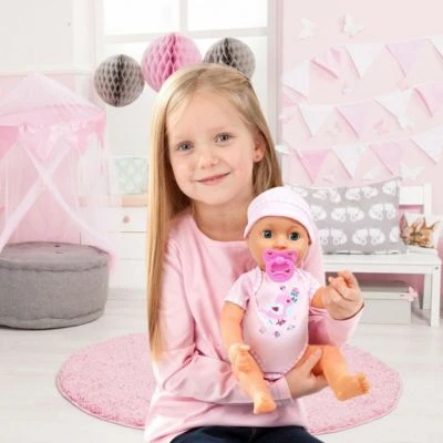 Wenn man Piccolina Newborn Baby ihre Flasche mit Wasser gibt, macht sie Pipi in ihr Töpfchen.Legt man die Babypuppe schlafen, so schlieĂt sie ihre Augen.Piccolina Newborn Baby trĂ€gt einen niedlichen Body mit passendem MĂŒtzchen.Arme und Beine lassen sich leicht bewegen, damit ist Baby Lisa bestens fĂŒr Rollenspiele geeignet.Im Set ist auch ein Vogel mit Sound, FlĂ€schchen, Schnuller, Teller mit Essbesteck und eine Windel enthalten.