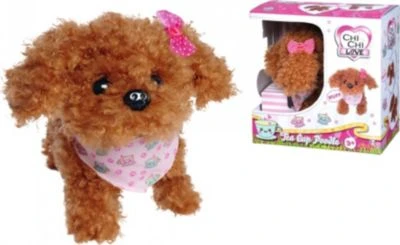 Wer kommt denn da, mit wedelnder Rute angelaufen? Das ist Chi Chi Love „Tea Cup Poodle Puppy“ von Simba! Dieser bezaubernde Kuschelkumpel kann laufen, bellen und sogar mit dem Schwanz wackeln. Das niedliche Gesicht und die verschiedenen Soundeffekte machen den flauschigen Pudel-Welpen zu einem richtigen Haustier-Freund fürs Kinderzimmer. Die großen Augen schauen so treu in die Welt, dass jeder kleine Hunde-Fans begeistert sein wird.