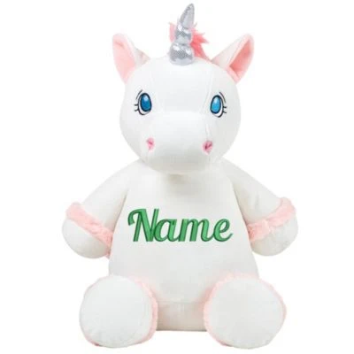 • Die personalisierte Stickerei erfolgt auf den Bauch des Einhorns und macht das Kuscheltier zum Unikat