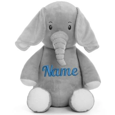 • Die personalisierte Stickerei erfolgt auf den Bauch des Elefanten und macht das Kuscheltier zum Unikat