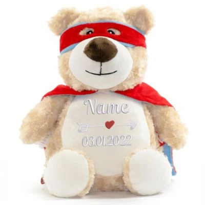 • Die personalisierte Stickerei erfolgt auf den Bauch des Bären und macht das Kuscheltier zum Unikat