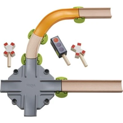 Das Tolle an den Kullerbü-Bahnen von HABA ist, dass sie durch ein neu entwickeltes Klick- und Stecksystem schon für kleinere Kinder leicht aufzubauen sind und selbst im größten Spieleifer nicht umkippen. Alle Elemente wie Säulen, Rampen, Kurven, Basen und Verbinder sind flexibel miteinander kombinierbar. Beim Ergänzungsset Straßenkreuzung bringt eine Straßenkreuzung mit Ampel, Verkehrszeichen, Kurven und Wellenkurve sowie mehreren Geraden jede Menge Abwechslung ins Kullerspiel. Die grünen Bodenverbinder halten dabei alle Bahnstrecken stabil zusammen und sorgen für extralanges Kullervergnügen. So ist das Ergänzungsset Straßenkreuzung eine prima Erweiterung für jede Kullerbü-Spielbahn