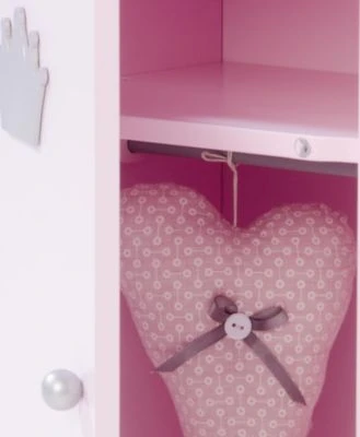 Der roba „Prinzessin Sophie“ Puppenkleiderschrank besticht durch ein liebevolles und detailreiches Aussehen und lädt kleine Puppeneltern zum Ordnung halten ein. Ein Ablageboden und eine Kleiderstange bieten genĂĽgend Platz, um die Lieblingskleider der Puppen zu stapeln, zu sortieren und aufzubewahren.